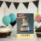 A birthday card featuring a ghost themed birthday cake on the front with "Happy Birthday", all-caps bold font. Personalize the front by adding your name(s). The inside of the card features space for your typed or handwritten message.