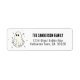 Welcome guests to an annual Halloween costume party, Halloween baby shower, or any event with this fun and simple return address label. A simple overall black and white look that has a mix of simple and bold typography. A cute and simple little ghost with black stars around it. There are a couple fun 'hidden' elements like an orange bow and a Halloween cocktail. If you want to add these, just tap the 'eye' icon in the editor. Cute Spooky Ghost Boos And Booze Happy Halloween Party Return Address label