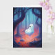 Set against a backdrop of a mystical forest adorned with bare trees and an orange ground, this card captures the essence of Halloween's enchantment.