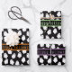 Cute and stylish black and white spooky cartoon ghost patterned 3-piece Wrapping Paper set edged in Halloween orange, fluoro green and purple. Creepy font typography "Happy Halloween" can be easily customized. Just right to add to the fun and festivities when you exchange gifts over the Trick or Treat Holiday weekend.