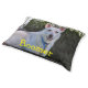 LOVE, love, LOVE this doggy pillow/bed. I purchased this dog bed a few years ago, in a different design, so I know it is a quality dog bed. The cover zips off for easy laundering and it doesn't shrink or pill after multiple machine washings. I use it at the end of the chaise section of my sofa as a bed for my dog and to help keep the sofa clean where she lays. I uploaded this photo design with her name and a picture of her sleeping on another pillow on our bed, with waves added in because I just know she's dreaming of being on the beach. When I received this new one, I replaced the old one on the sofa and Sara immediately laid down on it and knew it was for her. If you have a larger dog (Sara is about 25lbs) you'll want to order the larger size. Zazzle's printing and colors are always perfect. I'm a photographer, and I know how I expect the colors to come out, and they always do with Zazzle.