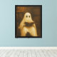 A hauntingly charming painting of a ghost reading in an old library. The ghost, draped in a simple white sheet with large dark eyes, sits quietly in a wooden chair surrounded by tall shelves filled with vintage books. The warm sepia tones and soft brushstrokes create a cozy yet mysterious atmosphere, blending gothic and whimsical aesthetics. This artwork is perfect for book lovers, Halloween enthusiasts, or anyone who enjoys a touch of spooky charm in their home décor.