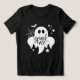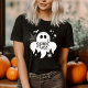 Fun 'Spook Me' Halloween t shirt with ghost, cobwebs, spider, bat and stars. White design with slight textured grunge overlay effect. The perfect spooky outfit for Halloween parties, trick or treating, and memorable group photos.