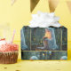 A mystical, shrouded creature holds a cupcake with a single lit candle