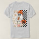 Playful ghost wearing a cozy orange beanie, paired with soft flowers and a checkerboard background. Great for t-shirts, tote bags, and stickers.