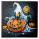 Ghost with glowing pumpkins on Halloween Ceramic Tile