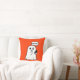 A modern decorative throw pillow featuring a confused ghost holding a smartphone and saying "what?" with a puzzled expression on a bright orange background. The design perfectly captures the blend of contemporary technology with Halloween themes, creating a relatable and humorous home accent piece.