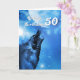 A ghost wolf howling to the winter moon. An unusual and unique design showing the full moon in the sky with stylized stars.