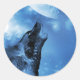 A ghost wolf howling to the winter moon. An unusual and unique design showing the full moon in the sky with stylized stars.