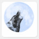 A ghost wolf howling to the winter moon. An unusual and unique design showing the full moon in the sky with stylized stars.