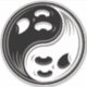 Yin Yang symbol made from two spooky ghosts in contrasting black and white. Keywords: balance, chinese, contrast, ghost, halloween, symbol, yang, yin, yin yang, yinyang