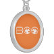 Ghostly Boo Halloween Necklace, Orange and White Silver Plated Necklace
