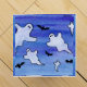 A tiny watercolor of ghosts and bats in flight against an evening sky adorns this fun Halloween wine gift box!