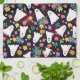 Cute cartoon ghosts among the flowers, pumpkins, leaves, and polka dots.