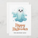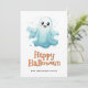 Happy Halloween card featuring watercolor illustration of ghosts and pumpkins. Easily personalize this cute Halloween card for kids with your family name and text.