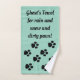 Cute picture of dog paw marks, is featured on this towel for dogs. With message, "Ghost's Towel for rain and snow and dirty paws"! Makes a useful and fun gift for your favorite pooch! Material: front is a polyester blend, back is 100% cotton, 16 by 28 inches and is machine washable, tumble dry on low. You can change the text also.