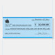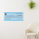 You can upload your own logo (png. file). Fill-in all six boxes. PLEASE NOTE: THIS IS A FAUX CHECK TEMPLATE. Blue background with black text.