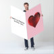 On this giant Valentine's greeting card, a red heart is shown while, inside, the text reads, "I couldn't find a card big engough to show you how I feel so, this one will have to do. Happy Valentine's day."