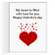 On this giant Valentine's greeting card, a red heart is shown while, inside, the text reads, "My hear is filled with love for you.. Happy Valentine's day."