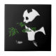 Giant Panda Eats Bamboo Black Ceramic Tile