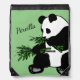 Giant Panda Eats Bamboo Name Green Drawstring Bag