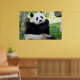 This image shows a giant panda sitting alone in a forested area. Adult giant pandas may be generally solitary, but they do communicate periodically through scent marks, calls and occasional meetings. Recent research has also found that giant pandas may form communities of seven to 15 individuals within the local population. Members of different communities generally avoid socializing with each other. | "Smithsonian" and the Smithsonian logo are registered trademarks owned by Smithsonian Institut