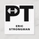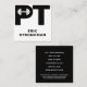 Minimalist and bold style in black and white color with big initials of personal trainer and dumbbell shape.