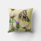 A warm, quiet image of a giant swallowtail butterfly on a purple thistle flower highlights this wonderful pillow.