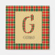 Handsome design celebrating your Scottish heritage, features monogram letter G in Clan Gibbs tartan plaid with matching background and customizable text