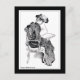 Vintage drawing by Charles Dana Gibson of a young woman in long dress and hat reading a book.