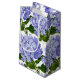 This gift bag is shown in a white color in a glossy finish with a lovely lavender blue hydrangea flower print.
