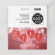 Romantic illustration featuring hanging red hearts with "GIFT" letters on a bokeh background.