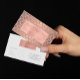 A minimal glam salon referral card featuring a pink rose gold powder rectangular. This is part of a minimal glam logo branding collection.