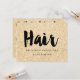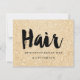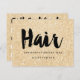 A modern, stylish gift certificate hair artist business card with modern hand lettering style brush typography in a trendy and elegant gold glitter sparkles background.