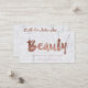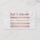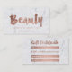 A modern, stylish gift certificate beauty artist business card with modern hand lettering style brush typography in faux rose gold foil on a trendy and elegant white marble background.