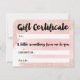 A modern, stylish gift certificate beauty nail technician business card with modern hand lettering style brush typography on a trendy and elegant luxurious rose gold glitter sparkles brushstrokes and pastel pink watercolor.