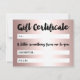 Gift certificate rose gold hello script metallic