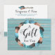 Gift Certificate Rustic Turquoise Wood & Feathers
