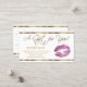 Gift Certificate Card. So Pink glitter lips on a black background with gold accents. (For matching products and designs type in Keyword: GLITTER LIPS ) (Note: Not Real Glitter, this is a print) ⭐This Product is 100% Customizable. Graphics and text can be deleted, moved, resized, changed around, rotated, etc... ⭐99% of my designs in my store are done in layers. This makes it easy for you to resize and move the graphics and text around so that it will fit each product perfectly. ⭐ (Please be sure to resize or move graphics if needed before ordering) You can also "TRANSFER DESIGN" on other Zazzle products and adjust the design to fit most of Zazzle items. (button is down on the right side of the page) Some of the text graphics have ready to fill in the box(es) or you can Click on the "CUSTOMIZE" button to add, move, delete, resize, background color or change any of the font or graphics. The design is made with high resolution vector and/or digital graphics for a professional print. ⭐NOTE: (THIS IS A PRINT. All zazzle product designs are "prints" unless otherwise stated under "About This Product" area) The design will be printed EXACTLY like you see it on the screen and on the product...so please make sure when you do your changes on the resizing of any of the graphics or text that it fits in the areas correctly and that your spelling and wording is how you like it to be in size, color and font. If you have any questions about the "DESIGN ONLY" or need help please contact me at my direct email - siggyscott@comcast.net or visit my store link: http://www.zazzle.com/store/designsbydonnasiggy (Copy and Paste) I'll be happy to help. ⭐ ALL OTHER QUESTIONS (such as the shipping, a refund, the printing is incorrect, or the product itself, etc...) PLEASE CONTACT ZAZZLE OR THE MAKER ⭐DIRECTLY⭐. Thank you for the support and stopping by my store - DesignsbyDonnaSiggy. © Donna Siegrist⭐⭐⭐ ZAZZLE promises 100% satisfaction.