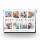 Give a beautiful personalized gift to your father that he'll cherish forever. Special personalized photo collage photo block to display your own special family photos and memories. Our design features a simple 8 photo collage grid design with "best dad ever" designed in modern faux gold font. Each photo is framed with a simple offset gold colored border. Customize with names.