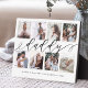 Send a beautiful personalized gift to your father that he'll cherish forever. Special personalized father's day family photo collage plaque to display your own special family photos and memories. Our design features a simple 8 photo collage design with "daddy" designed in a beautiful handwritten black script style. Each photo is framed with a simple offset gold coloured border. Customize with family member's names.