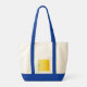 Love the durable cream colored canvas and navy blue contrasted handles. Perfect for carrying my laptop and papers.