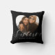 A special and memorable photo pillow gift for sisters. The design features heart frame photos to display your own special photos. "Sister" is designed in a stylish calligraphy and customized with sister's names. The background can be changed to any color. The reverse side features a repeated heart-shaped photo placeholder with "Sisters" displayed in elegant script calligraphy. Send a memorable and special gift to yourself and your sisters that you will cherish for years to come.