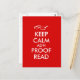 This humorous customizable writing design has an image of a pair of glasses and says Keep Calm adn Proof Read.