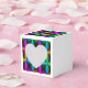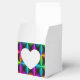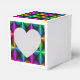 heart gift box has cool different colors designs on it.