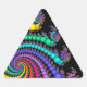 Translucent strands of glowing pearls or balls in brilliant purple, pink, red, orange, yellow, green, and blue spiral into the center of the bold fractal on this rainbow triangle sticker. Great for gay pride events, fundraising, or as a gift for LGBTQ friends and/or allies.