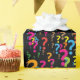 With the gift paper "Interrogant", any gift will be very special. Its design is designed to attract attention, and will be a focus on the gift table, guests will not be able to change their gaze. With a black background, and flashy pink colors, green oranges, this fascinating pattern has been designed. A stylish, modern package for any gift