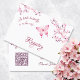 On the front side is the title "Registry" in a calligraphic classical script. It also features a cherry blossom branch and a butterfly to match to my "little butterfly" girl baby shower suit. At the backside is a scannable qr code for the guest of honor´s gift registry. If you decide this, please watch out that you buy the matching baby shower invitation with no qr code at the backside. Other possibility is not to buy this card but take the invitation with the qr code at the backside.