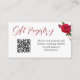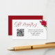 Wedding enclosure cards for gift registry. Direct guests to a wedding website to find their gift registry information by customizing these small cards with their QR code. White cards have red script at the top, a short paragraph to the side, and a QR code template. A rose stem with bloom and buds, decorates the upper righthand corner. Reverse is solid red. Enclose a card with an invitation to a shower, engagement party, or wedding ceremony and reception.