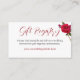 Wedding enclosure cards for gift registry. Direct guests to a wedding website to find registry information by customizing these small cards that come in bulk. White cards have red script at the top, a short paragraph in the center, and a website URL in red printed font. A rose stem with bloom and buds, decorates the upper righthand corner. Reverse is solid red. Enclose a card with an invitation to an any party for the couple, bridal shower, and wedding itself.